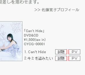 佐藤寛子プロフィールCan't Hideキミを盗みたいCan't Hide PVキミを盗みたい PV